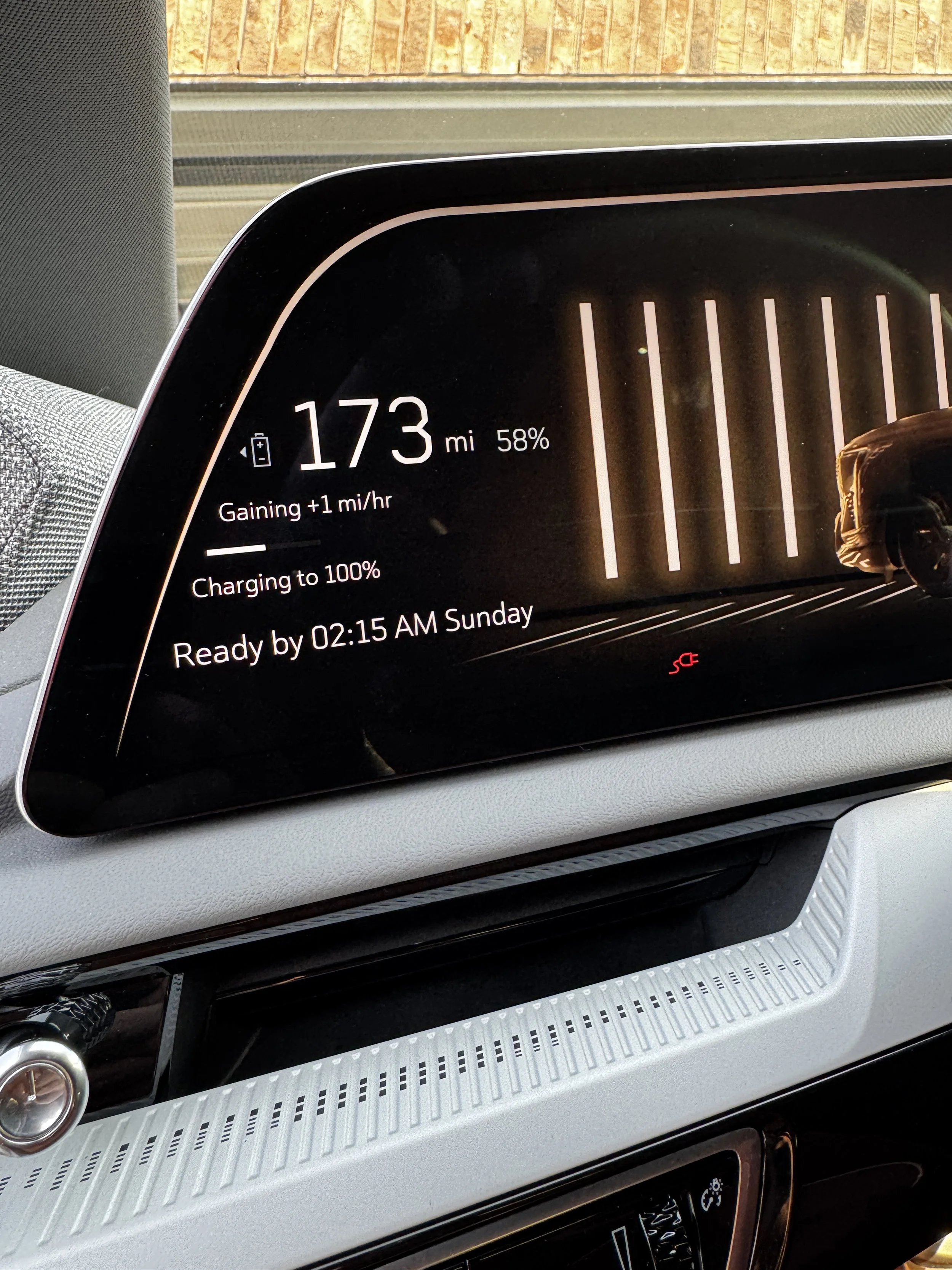 Earlier that evening we drove around town, scouting a spot for a quick charge as we had already used 120 miles of the Optiq’s battery. In a town with nearly 140,000 people the only quick charge locations we could find were at a Tesla station. Unfortunately, our demonstration model did not include a Tesla charging adapter. As we reviewed our route to Mississippi, it became apparent that our stops would require at least 45 minutes to an hour to fully charge, adding an additional five hours roundtrip to our journey. The cost-benefit didn’t make sense and as such, we left the Optiq at home in lieu of our Lexus gas-powered sedan.