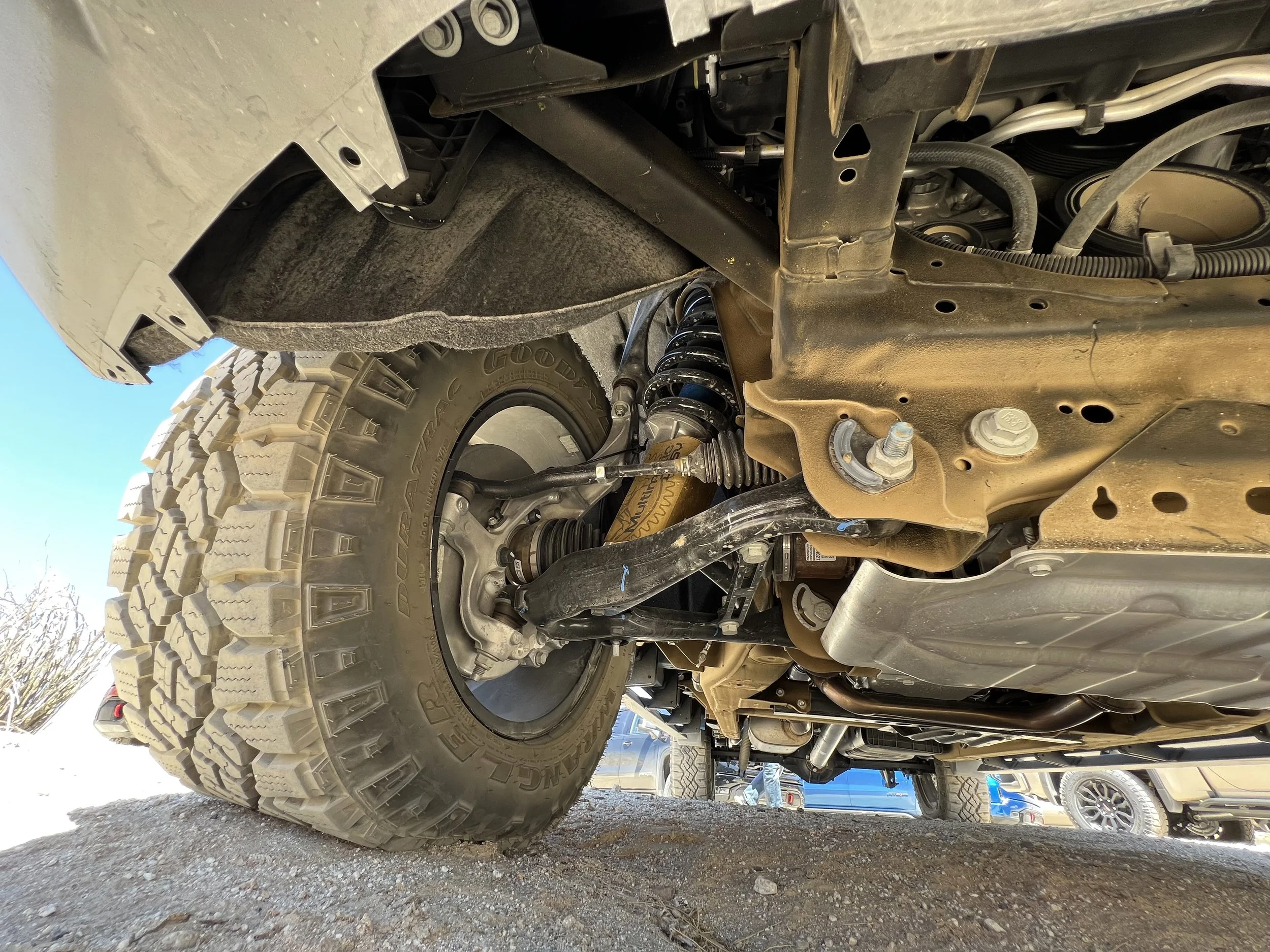 Front and rear e-locking differentials make the Sierra AT4X the only truck in the ½ ton segment with this offering, and they came in handy while I traversed the Diablo Dropoff and a variety of other obstacles while evaluating the truck at Anza-Borrego Desert State Park in southern California. 18” aluminum wheels, mated to 32” Goodyear Wrangler DuraTrac do a fantastic job of biting the terrain and limiting wheel spin though I’d like to see a slightly larger tire offered to at least match the 33” tires available as standard on the Jeep Wrangler Rubicon. Additionally, rocker guards aren’t standard on the AT4X and for a truck pushing the mid-$70ks, I feel this should be standard equipment.